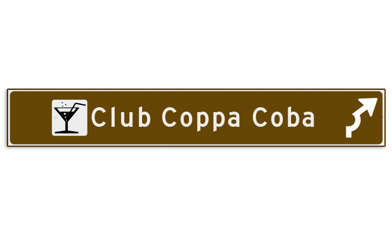 Verwijsbord toeristisch (bruin) - met 1 pictogram, 2 regels tekst en pijl