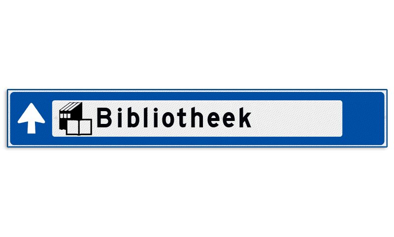 Verwijsbord object (blauw) - met 1 pictogram, 1 regel tekst en pijl