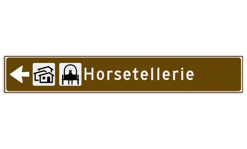 Verwijsbord toeristisch (bruin) - met 2 pictogrammen, 1 regel tekst en pijl