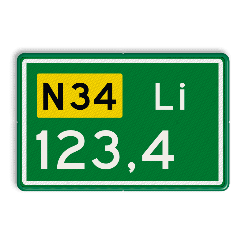 Officieel aluminium hectometerbord met een dubbel omgezette rand.