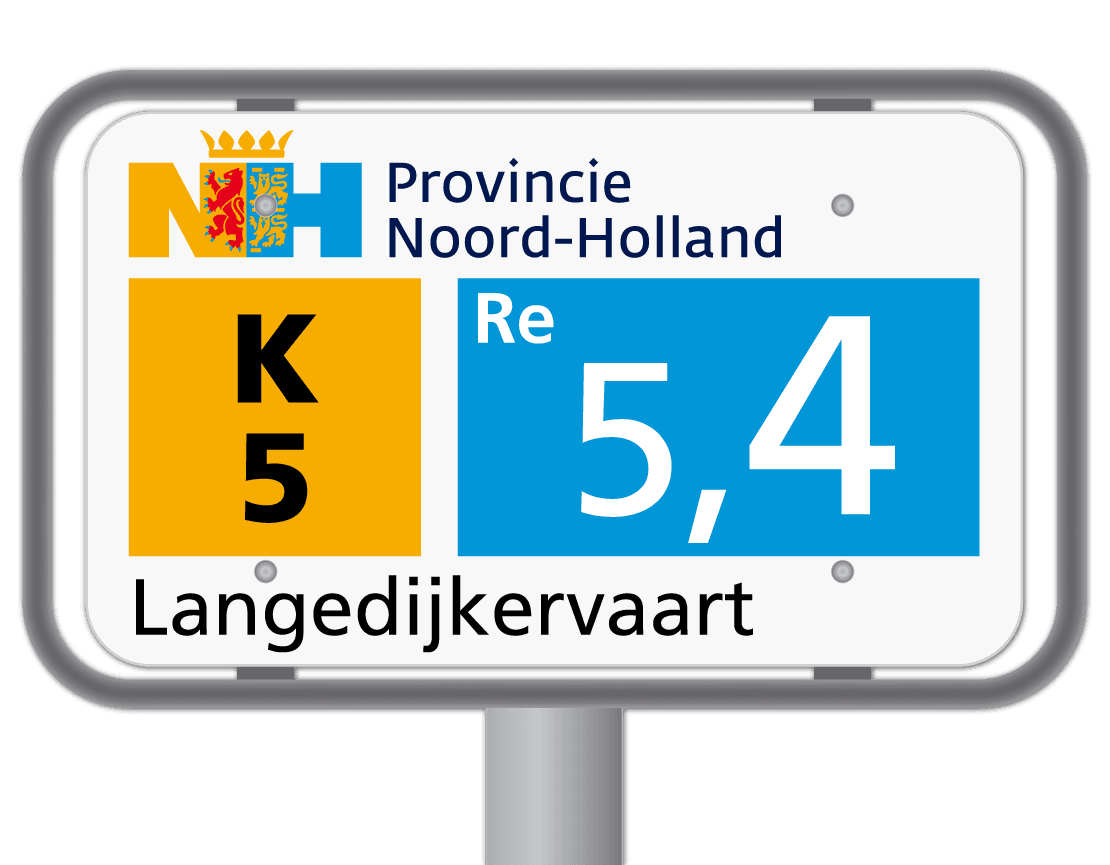 Hectometerpaal met vlak bord 330x195mm met tekst - Noord-Holland